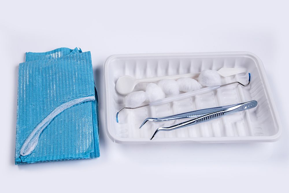 本產(chǎn)品由基本配置托盤、一次性使用口鏡和選用配置:一次性使用牙探針、一次性使用鑷子、醫(yī)用棉球、一次性醫(yī)用中單、一次性使用包布、一次性使用聚乙烯檢查手套、檢查手套、脫脂紗布?jí)K、止血鉗、壓舌板、一次性使用治療巾組成。